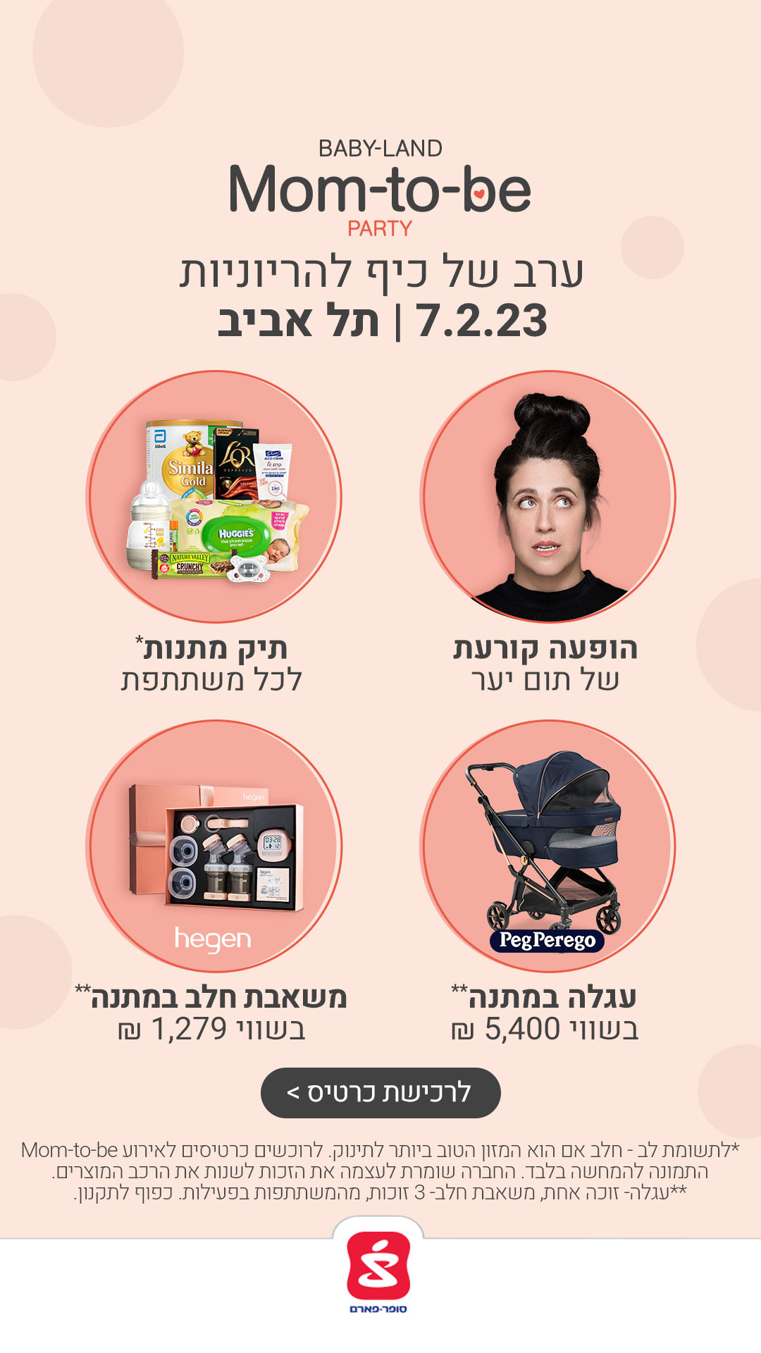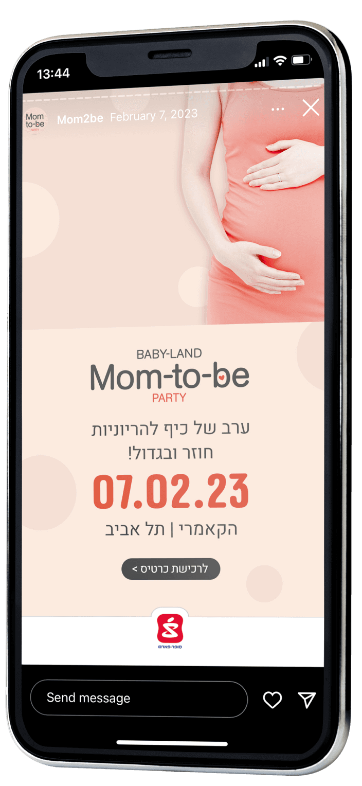 At the Mom-to-be party events, pregnant women experience an evening of fun, with gifts and stands of the best baby brands, and enjoy the performances of Israel’s leading artists.
