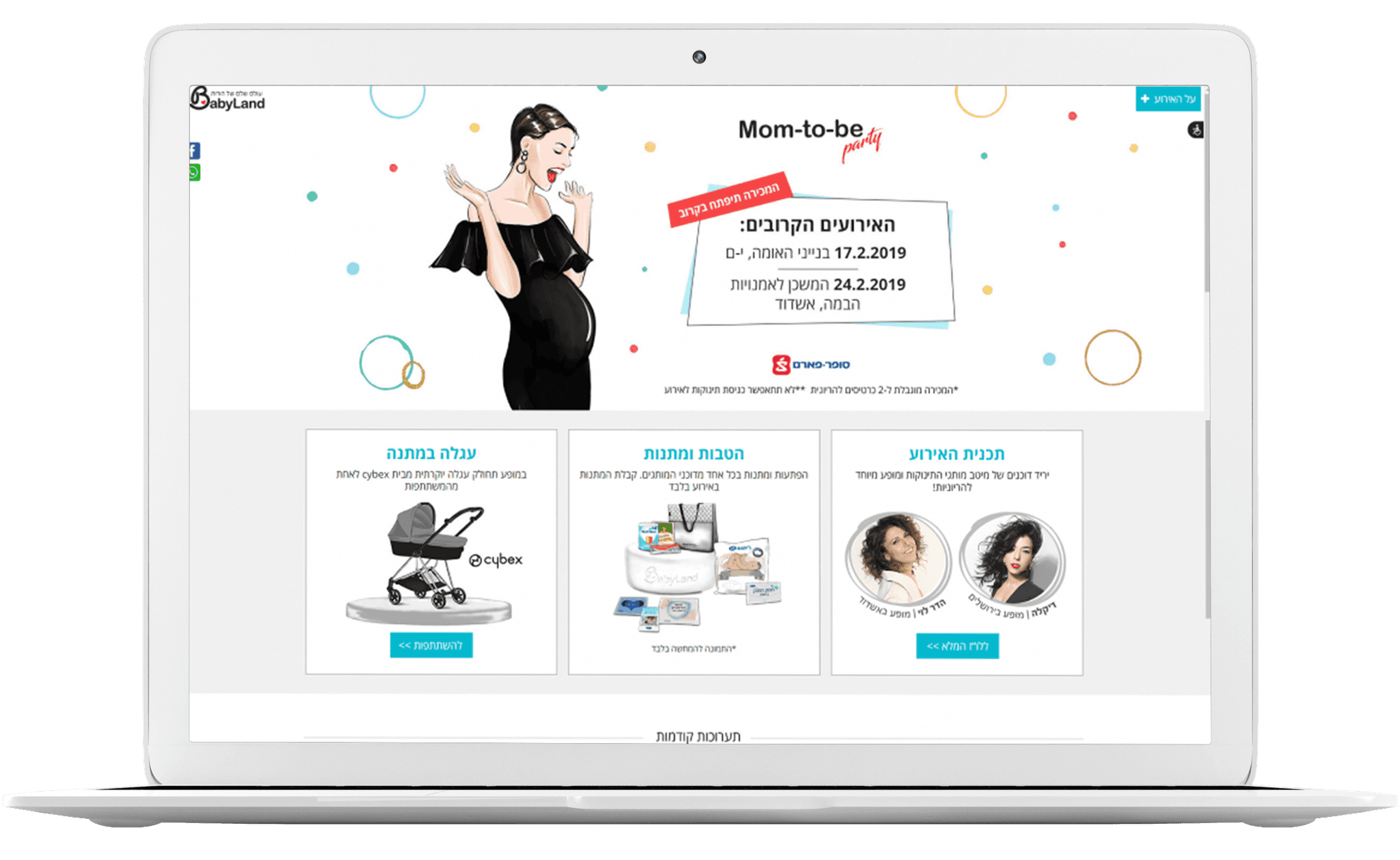 The concept of "Mom-to-be party" was added to the Baby-Land family 6 years ago. Baby-Land is an annual exhibition, the largest and leading of its kind in Israel, for parents and parents-to-be, that holds a website covering all topics related to pregnancy and childbirth.