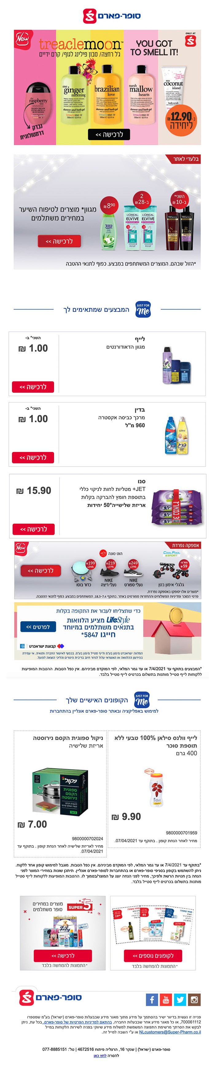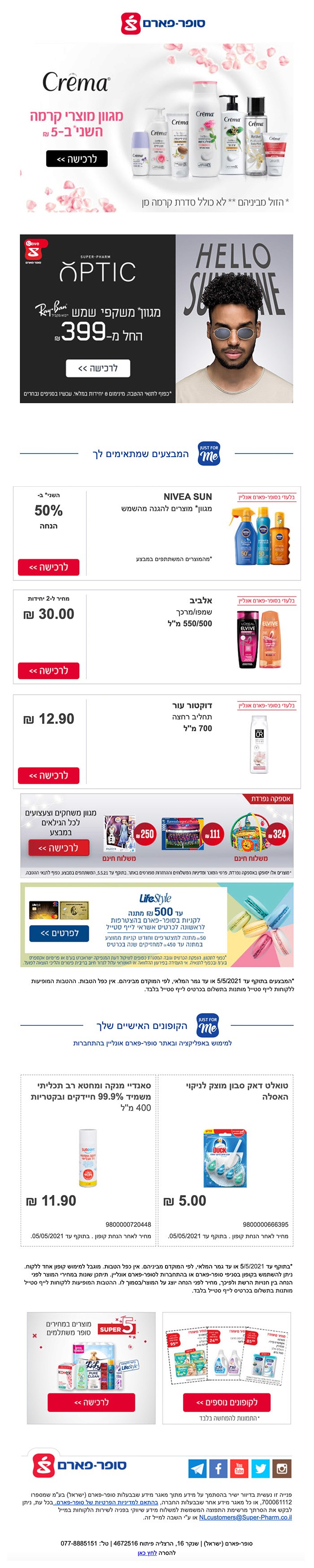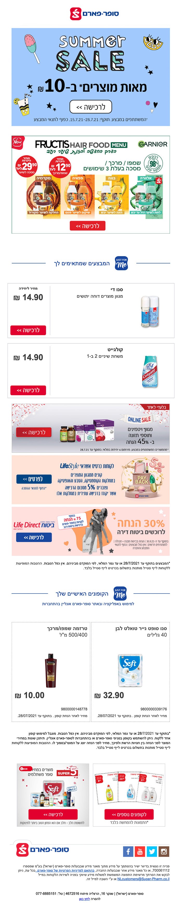 Designing the main version that assembles all the parts in the Super-Pharm newsletter.