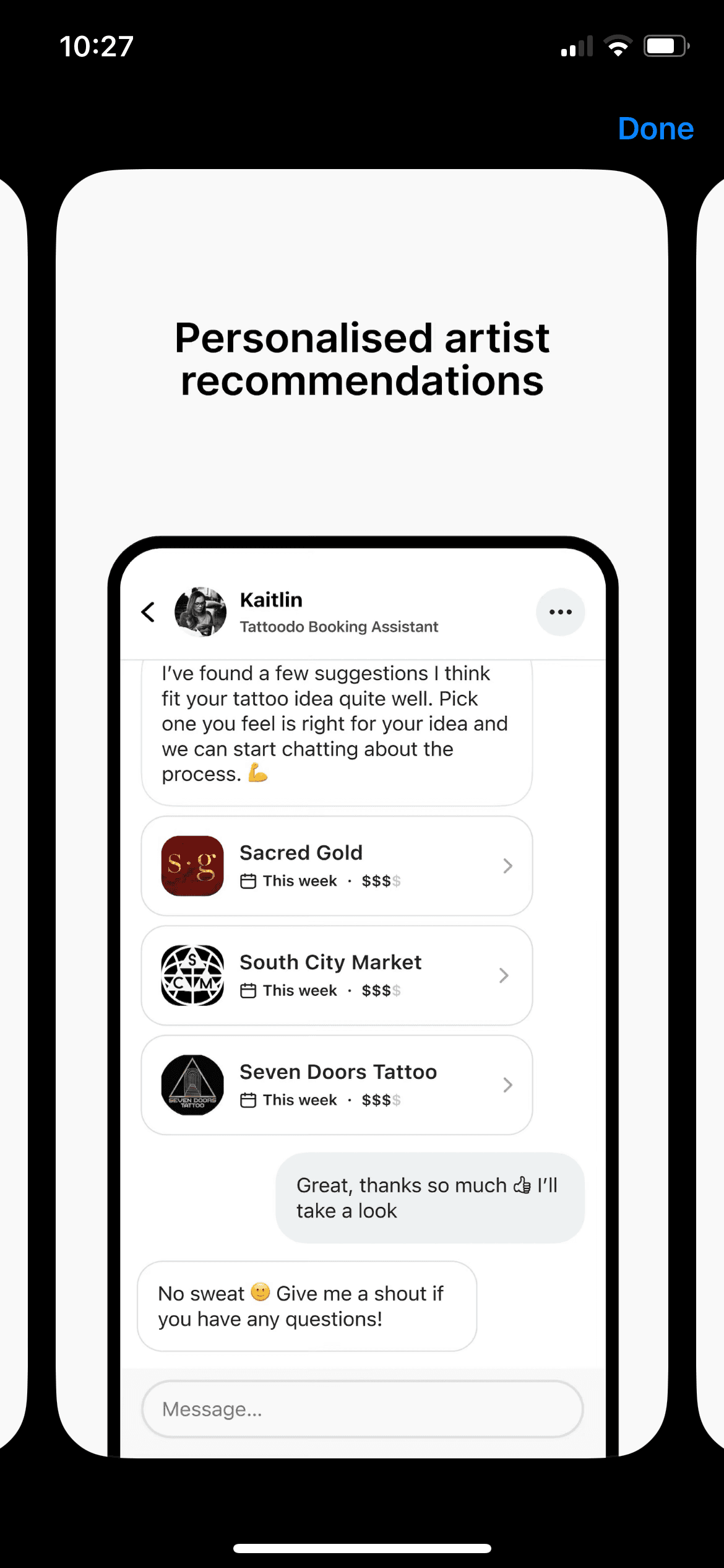 The app users can search for the perfect tattoo artist according to their style and book an appointment.
