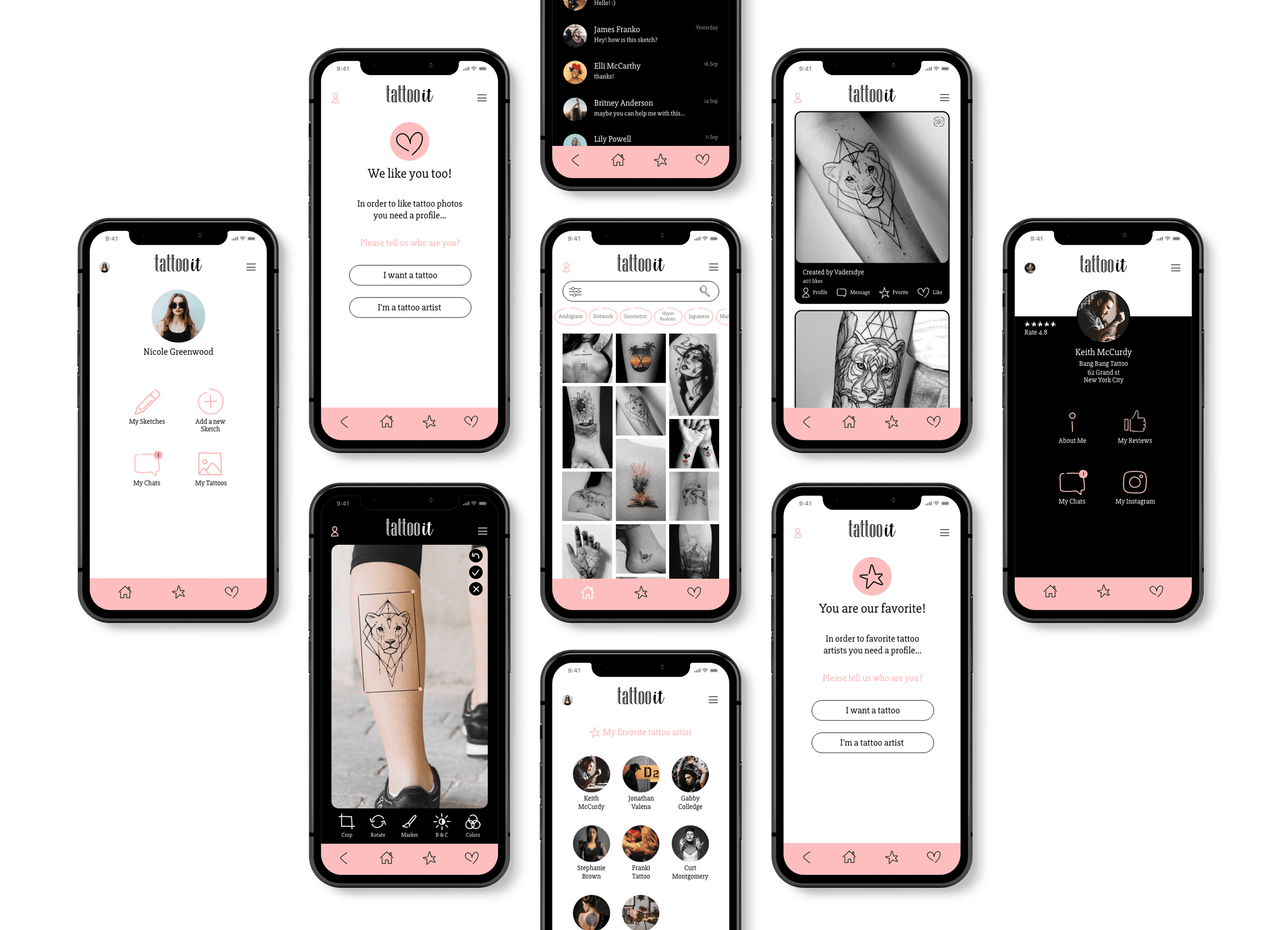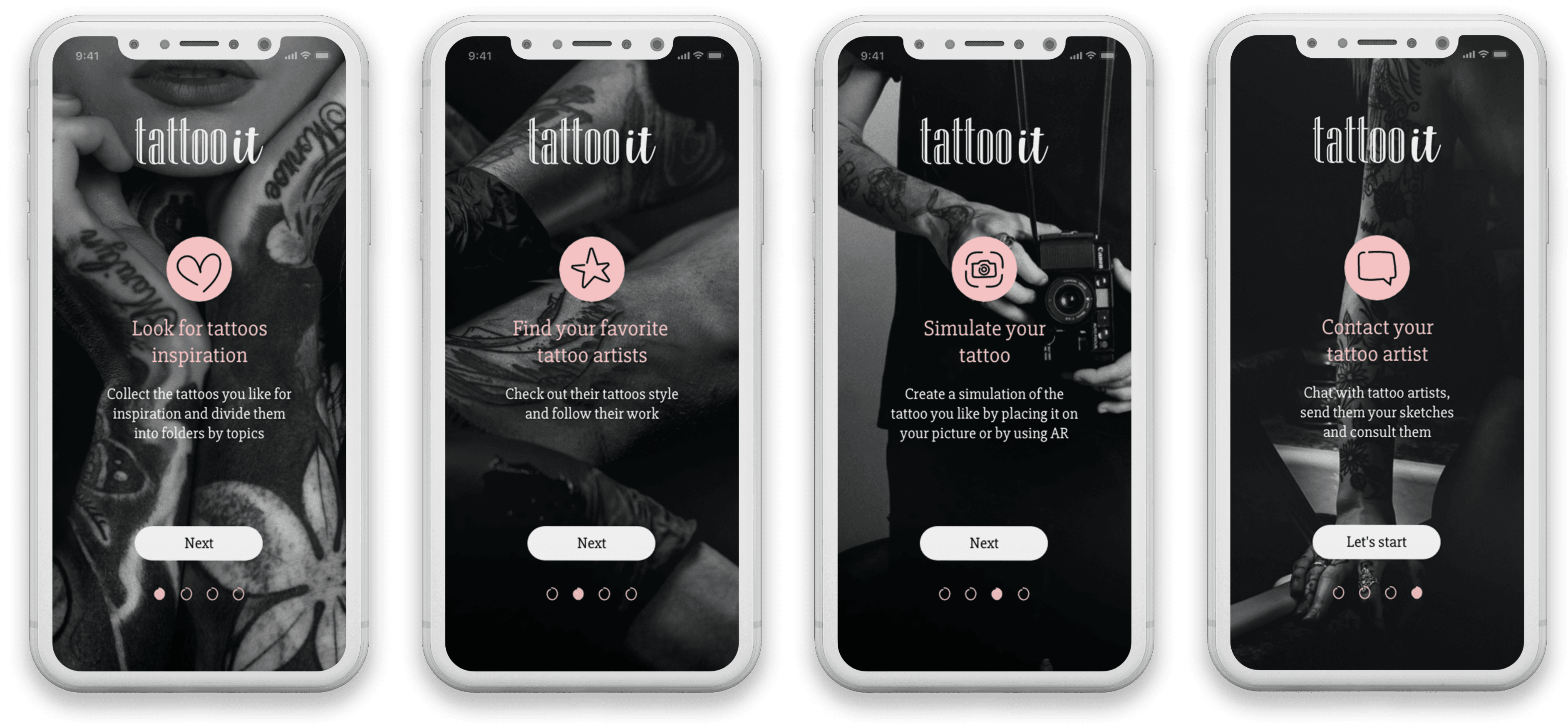 A tattoo app that helps users decide and create the ideal tattoo they dream of, by collecting inspirations, creating a sketch and placing it on the body.