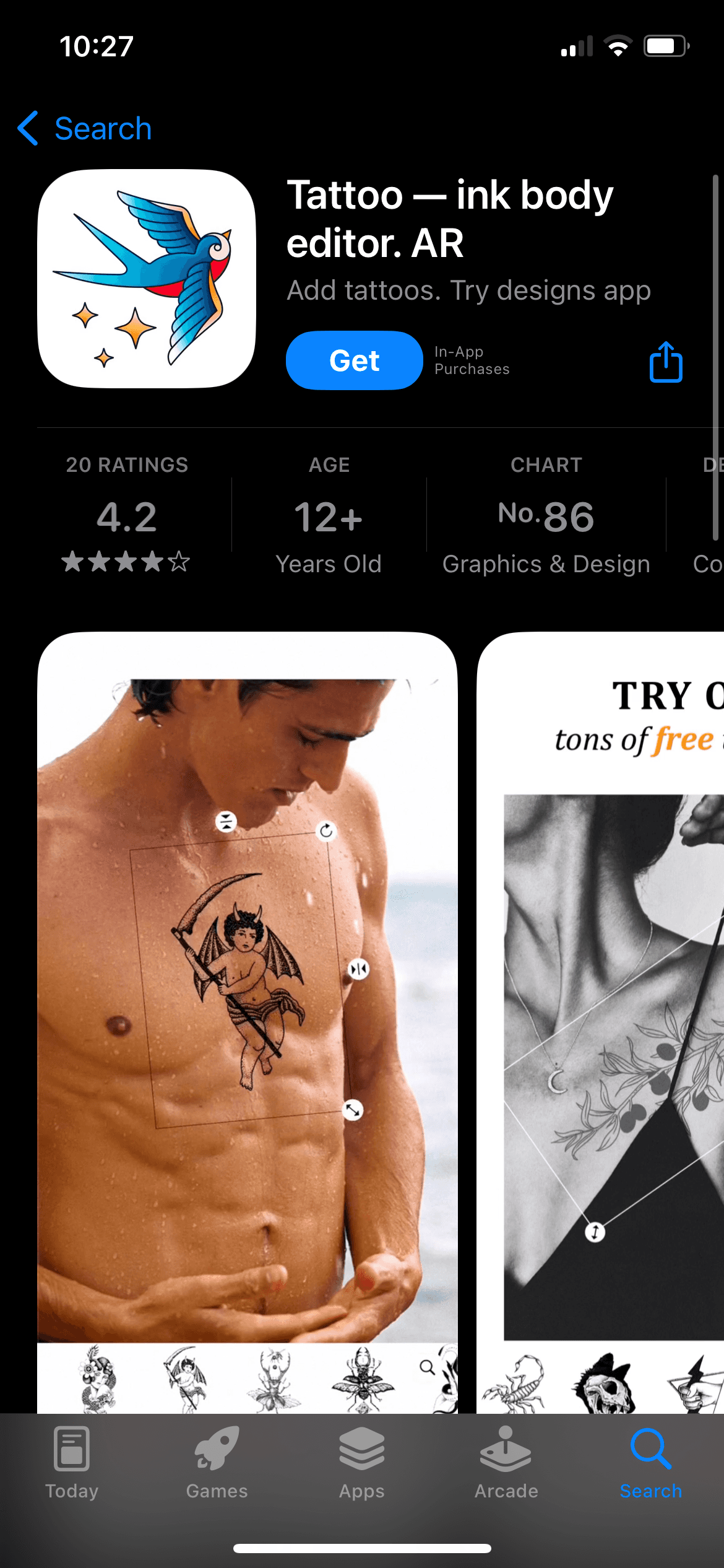 Create an app that is easy and intuitive to operate, that shows the illustration of the tattoo on the body as accurately as possible.